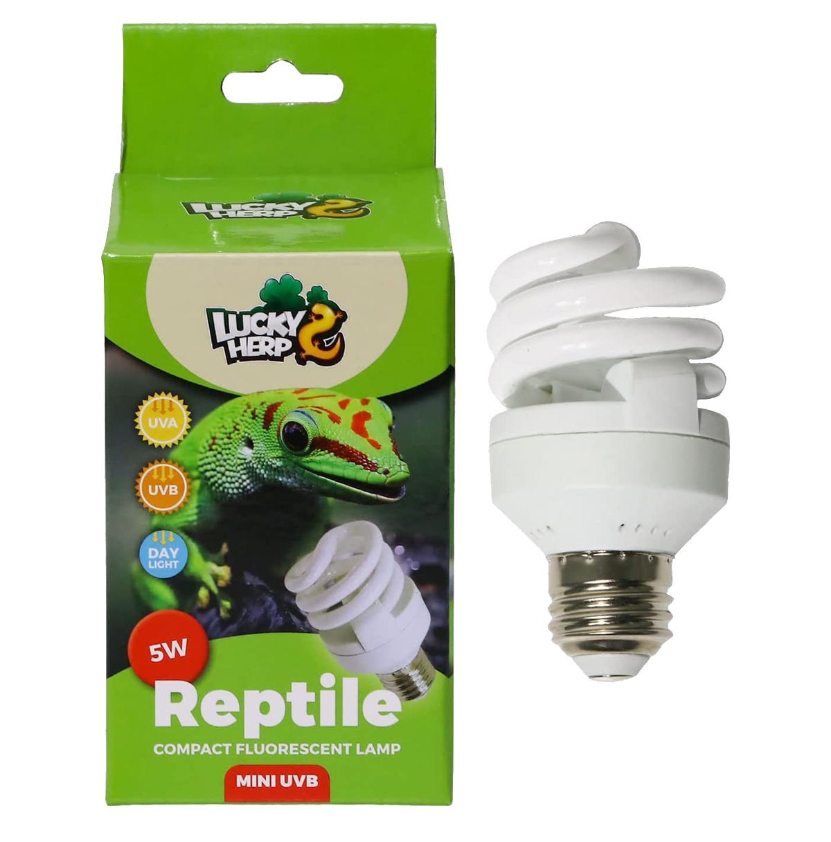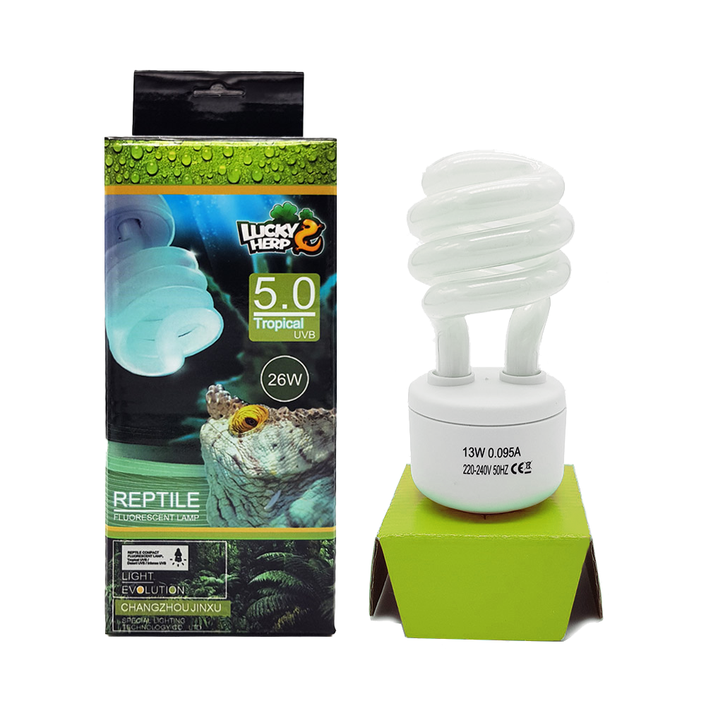 Компактная лампа "LuckyHerp UVB 5.0" — обладает умеренным излучением UVB, который соответствует теневым условиям, таким как тропические леса или джунгли.